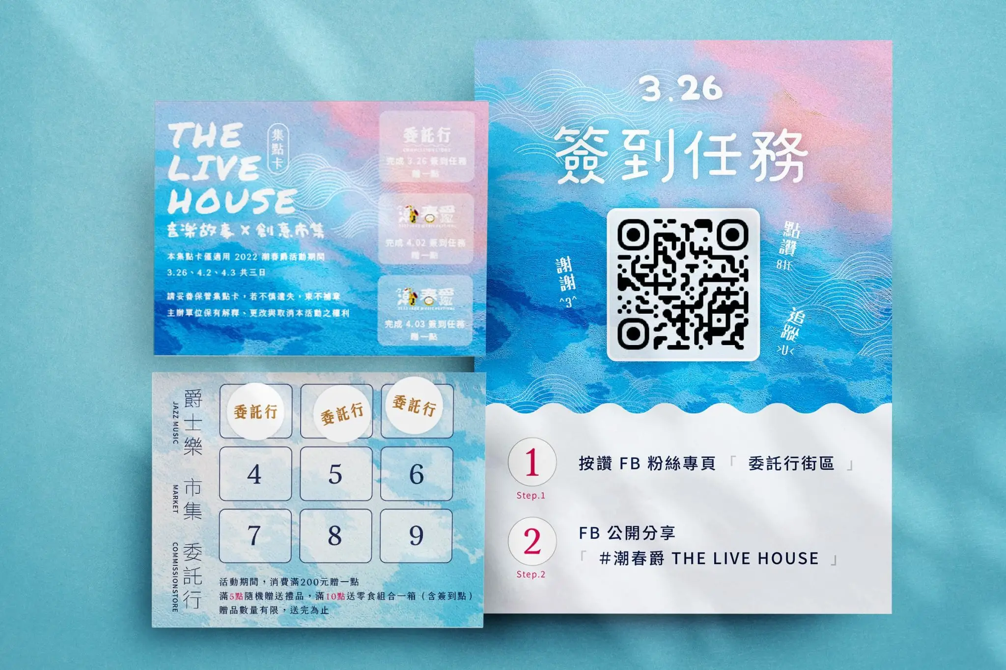 為了達到聯合行銷之效果,還協助委託行規劃闖關活動,設計闖關與集點卡,並加入任務要素,免費贈送贈品給民眾,希望能夠促使民眾消費、並參與全部的活動。