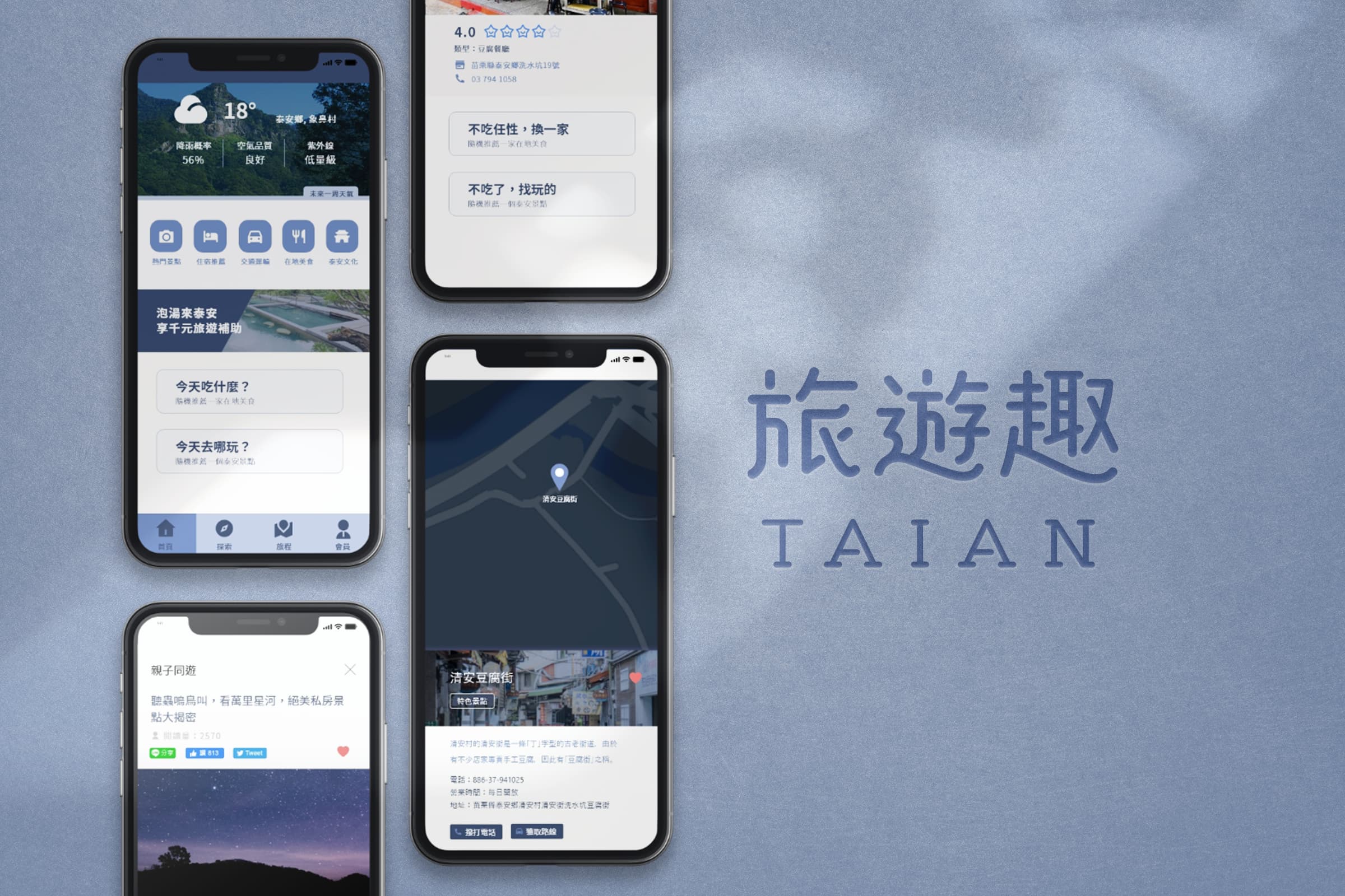 本案是針對苗栗泰安鄉旅遊觀光所規劃的網頁及 APP 提案,目的為結合數位工具、建置相關資訊平台,促進觀光發展。