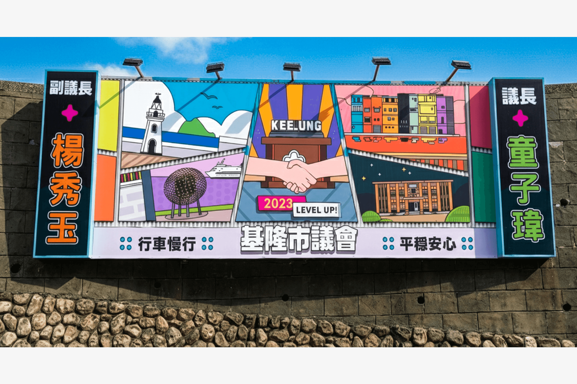基隆市議會的招牌設計,以清楚辨識與穩定呈現為核心,同時透過較為活潑的色彩運用,呼應基隆城市本身的活力與開放感,讓公共空間在嚴謹中保有親和度。